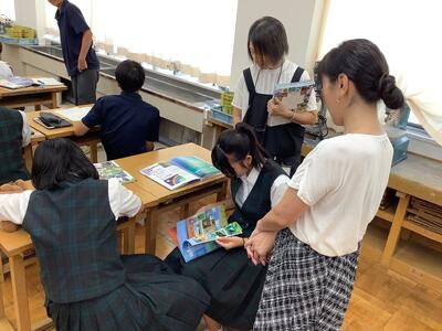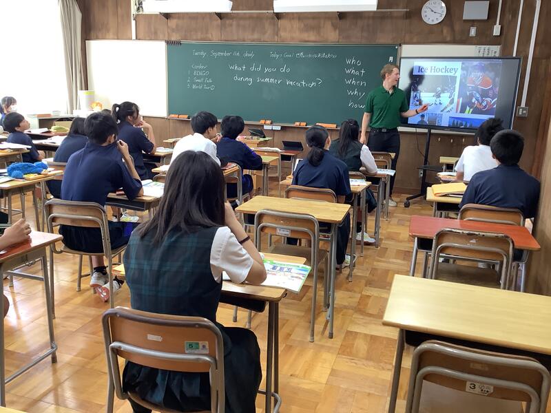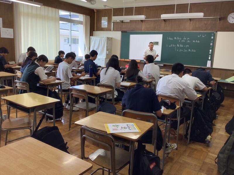 1年生の英語です。インターンシップの学生さんも補助に入ってくれています。