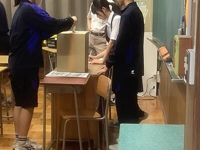 その後、教室に戻り投票となりましたが、どの学年、クラスも選挙管理委員の説明を静かに聞き、最後まで静粛に投票を進めることができました。