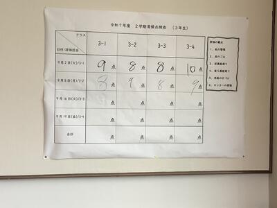 〇3年生の清掃点検表です。3-4がきちんと出来ているようです。