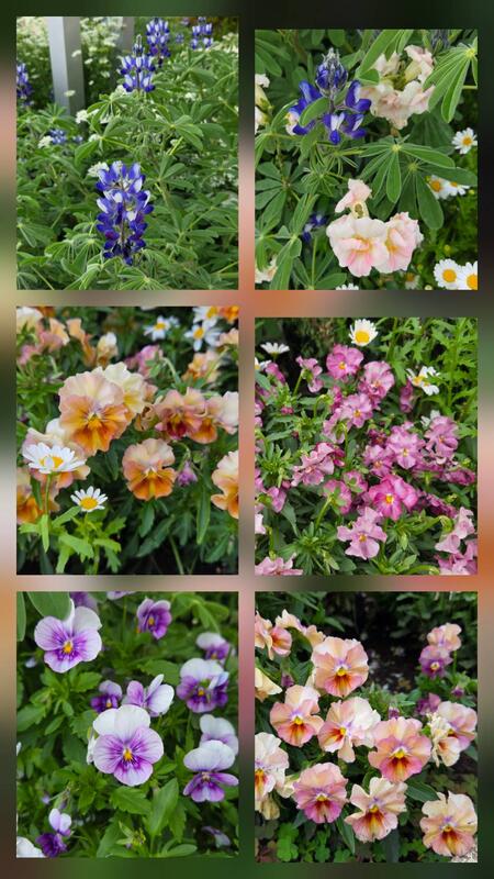 ◆メインの花壇では、ルピナス、オルレア、ビオラ、ノースポール、キンギョソウ、アリッサム、プリムラ、ネメシアが咲いています。