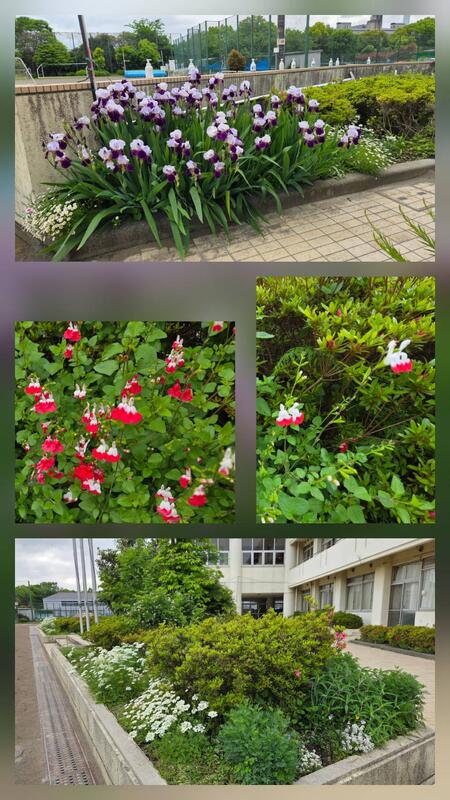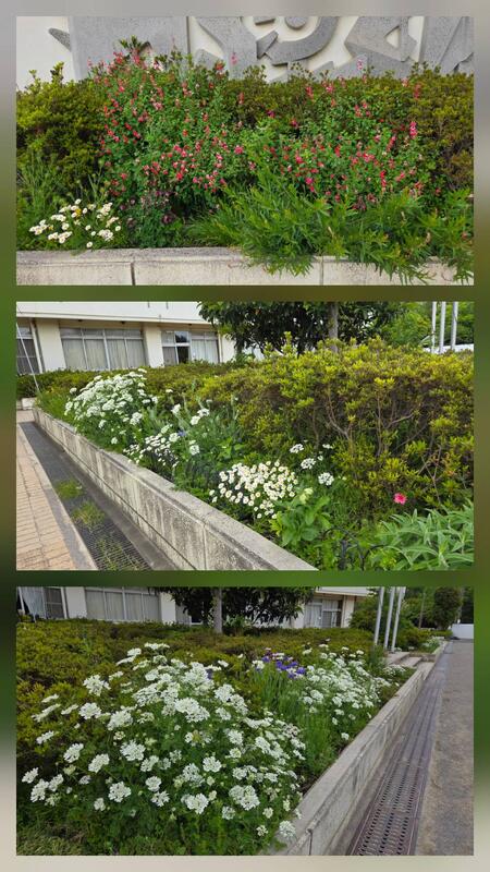 ◆その他の花壇では、ガウラ、カレンジュラまどか、ペチュニア、ボンザマーガレット、アリッサム、セラスチウム、アジサイ、サルビアコクシネア、ニゲラ、オルレア、ヤグルマギク、バラ(ICAN)、クレマチス、ノースポール、ジャーマンアイリス、チェリーセージ、キララ、オダマキ、イベリススノーボールが咲いています。