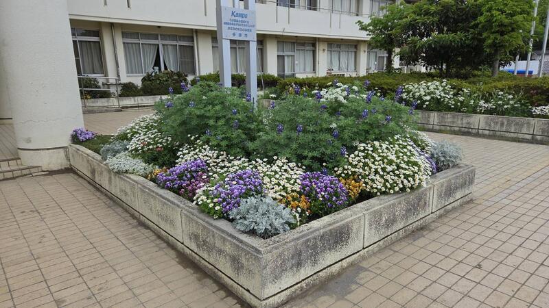 ひまわり大雪山を校庭側に15本、案内板近くに11本植えました。