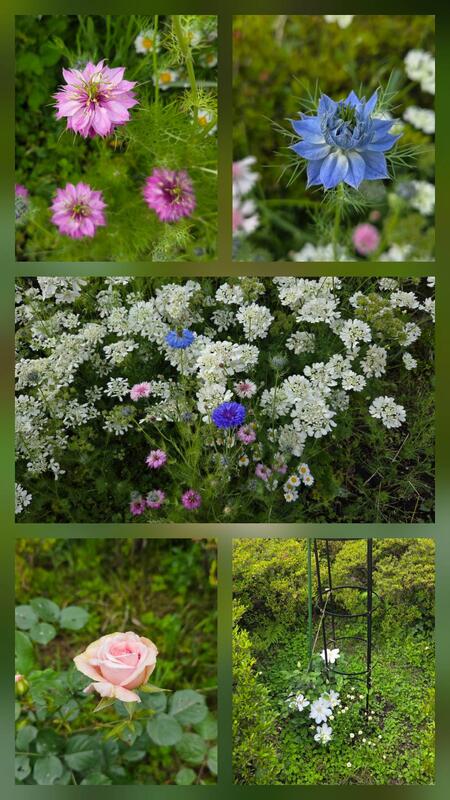 ◆メインの花壇では、ニゲラが咲き始めました。キンギョソウ、オルレア、ルピナス、ノースポール、ビオラ、アリッサム、ネメシアが咲いています。少しずつ、春の花たちが終わりに向かっています…。
