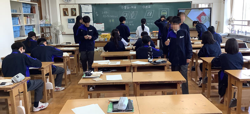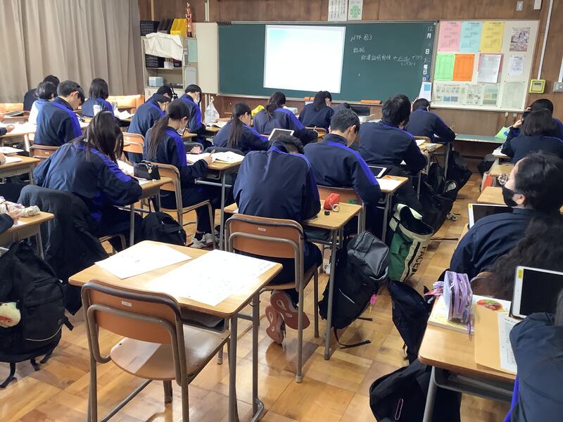 ・技術科です。生きていく上で起こる色々な場面を想定して、説明したり考えたりしています。