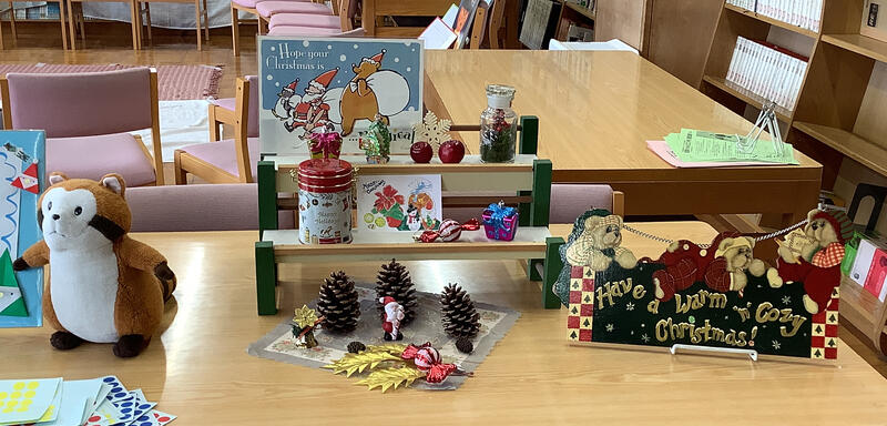 ⭐️図書室の飾り付けの一部です。今日も昼休みに読み聞かせを行います。きれいにディスプレイされています。