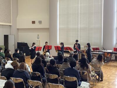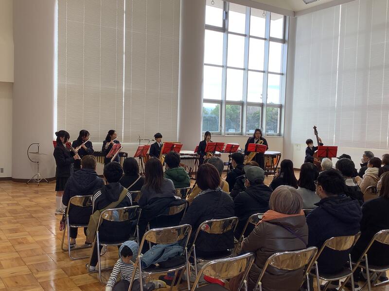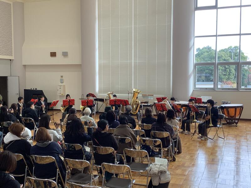 吹奏楽部がホールで校内アンサンブルコンサートを行いました。一週延期での開催でしたが、日頃の練習の成果を発表する機会となりました。今日は6曲を披露しました。どの曲も素敵でした。