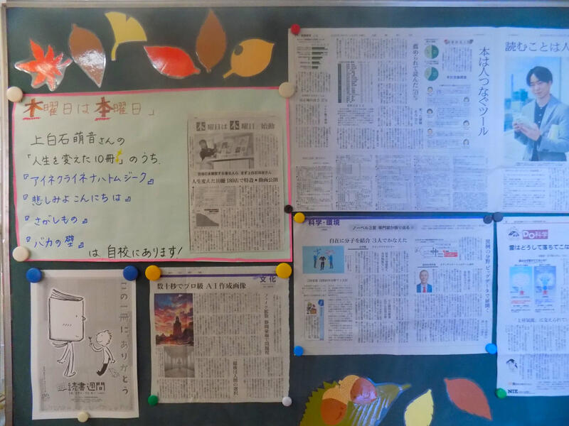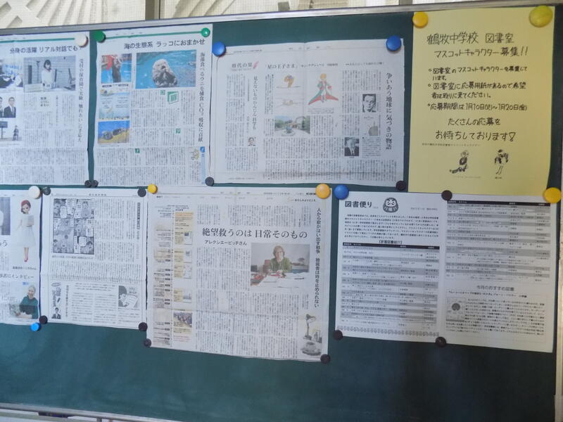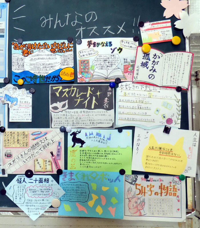 読書週間 (10月27日~11月9日) に鶴中の先生方の「オススメ本」を展示しました。