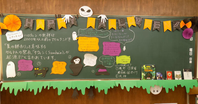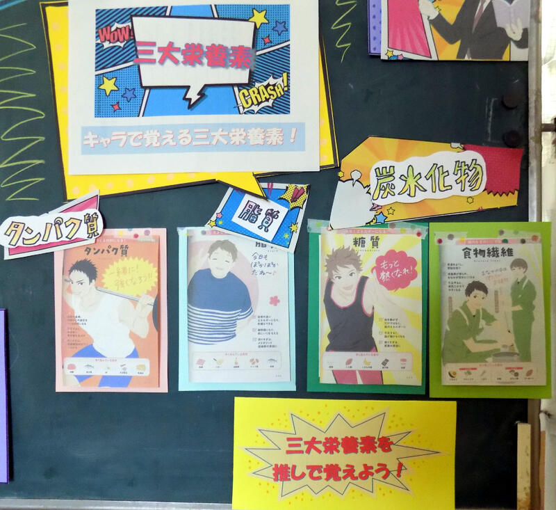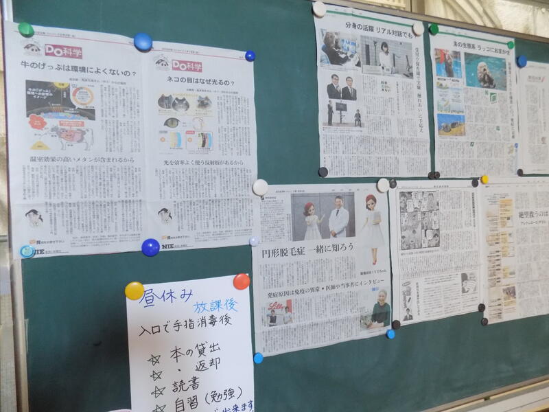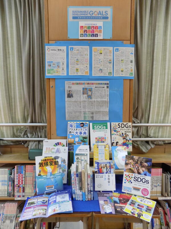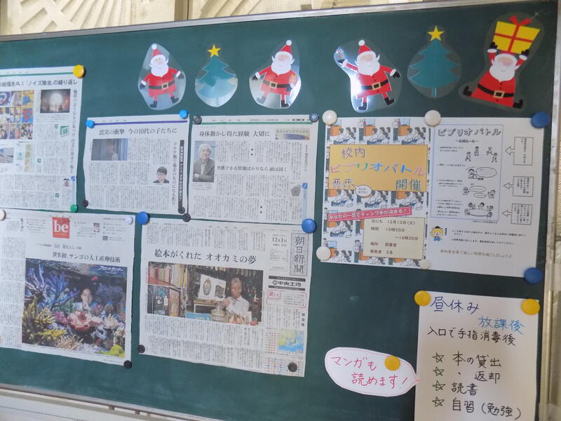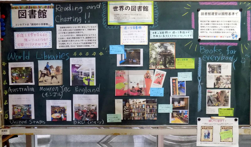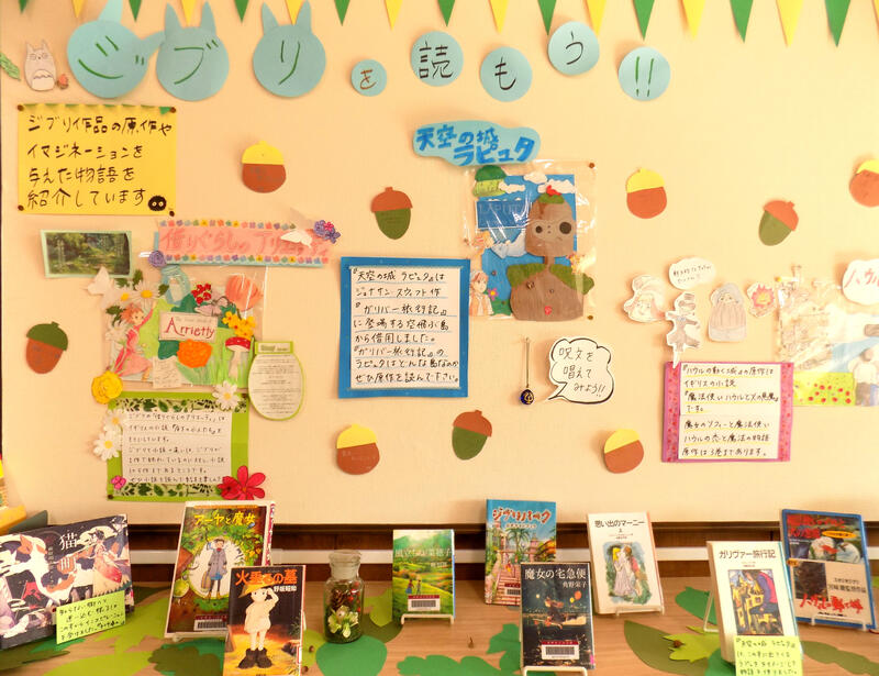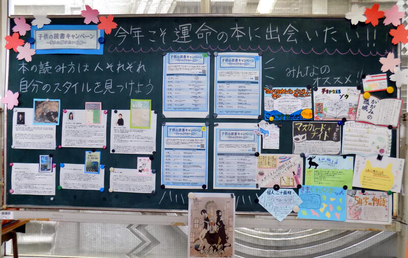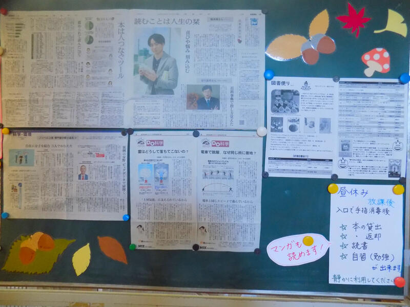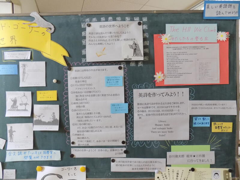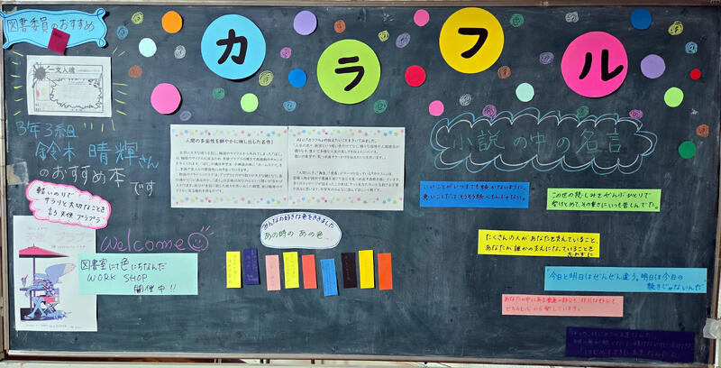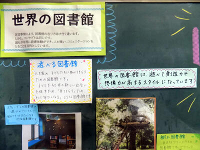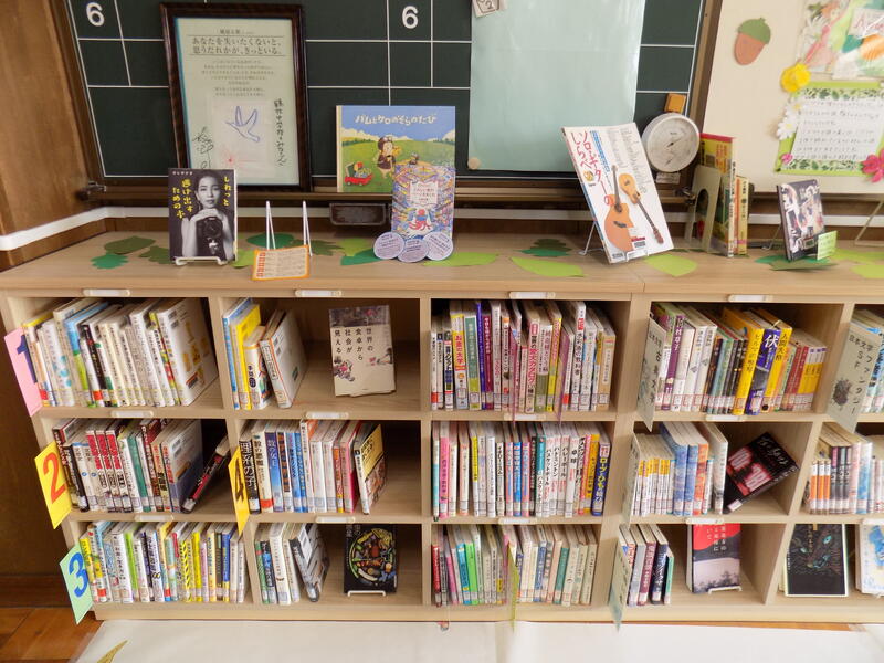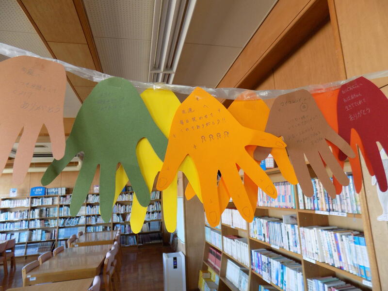 図書室には、みんなの「ありがとう」が飾られています。・命に感謝、いただきます。