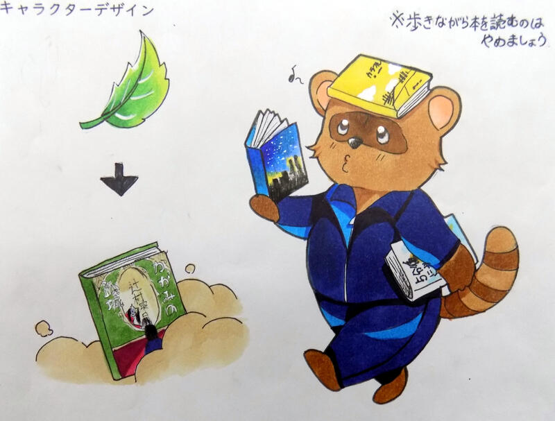 | ・鶴牧中学校の図書室に住みついているタヌキ。 ・常備している葉を使って、図書室で見た、気になる本を生成して読んでいる。 ・放課後の図書室に現れるので、運が良ければ出会えるかも! |