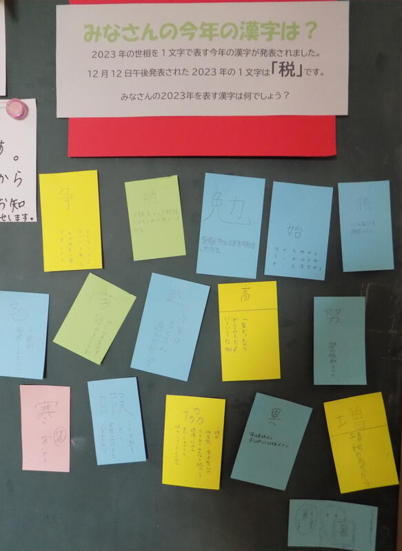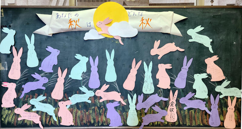 10月の掲示板食欲の秋(おいしいものをたくさん楽しく食べる。寿司を25貫食べる。たくさん食べて、体力を落とさず、集中して勉強に取り組めるようにしたい。など)