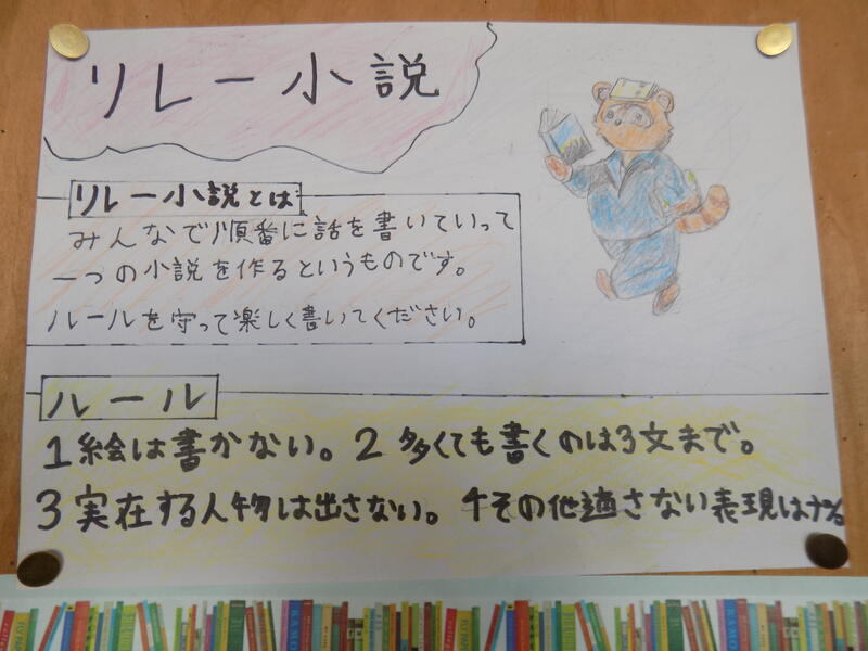 図書委員会企画、リレー小説です。どんなお話ができるのか、楽しみですね。