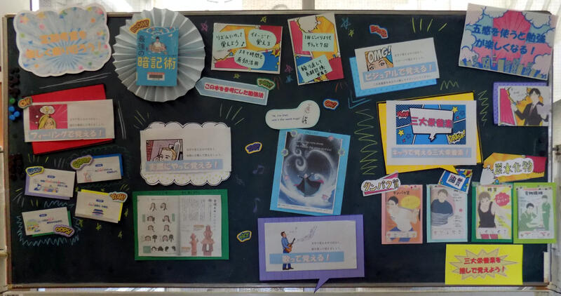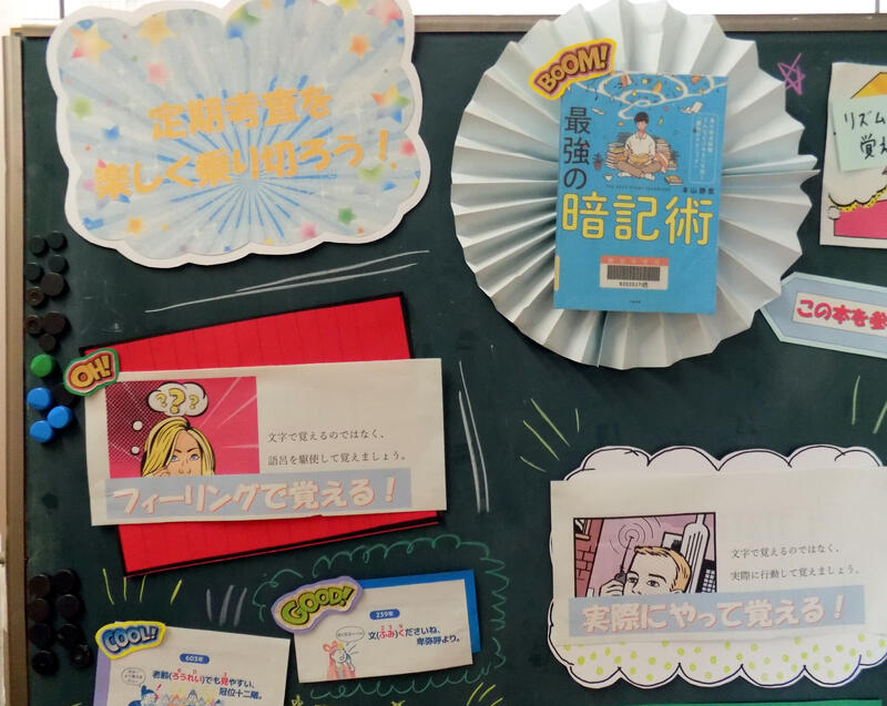 今月の掲示板は、「定期考査を楽しく乗り切ろう」がテーマです。