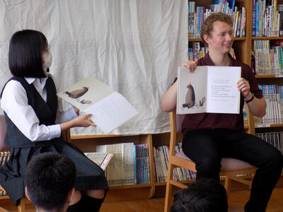 6月26日のTOPICSでも紹介しましたが、英語で読み聞かせの様子をアップいたします。