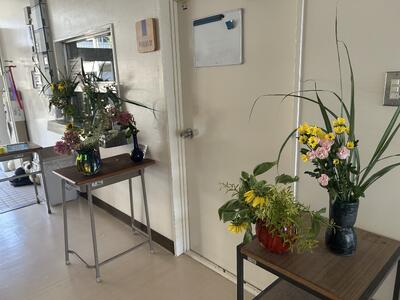 暑い日のスタートになりましたが、PTA、地域学校協働本部、地域の方、先生にお花をたくさん用意していただき、ありがたいです。
