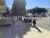 35度の超える猛暑日予報、真っ青の空の元、今日は早めの登校者が多かったです。
