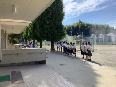 台風余波の高い湿度と強い風の中の登校で、この時期の熱中症対策とは一見違った感じですが、体調は崩しやすい天候です。残り4日をみんなで元気に過ごしたいですね。