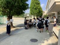 昨日より格段に暑い中の登校、しかもその中でPTAの方々が「漢字検定」の申込受付をしてくださっています。感謝です。