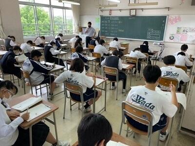 多くの生徒は、日頃の授業への取り組みや、主体的な学習の積み重ねが大切であることを実感したことでしょう。なお、2日目(6/17)は、国語・数学・保体、3日目(6/18)は、社会・技家・美術のテストが予定されています。