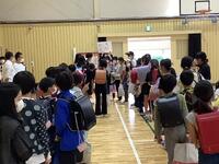 多摩第二小学校、愛和小学校、東寺方小学校の6年生がやや緊張した面持ちで本校の体育館に集合しました。今日は、学区内の小学校6年生に、少しでも中学校生活の不安を解消し、希望と期待をもってもらえるようにと企画した「小学生体験授業」の日です。
