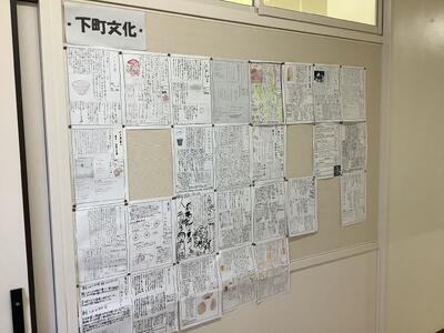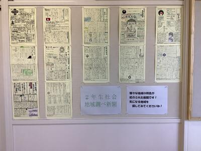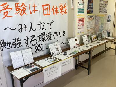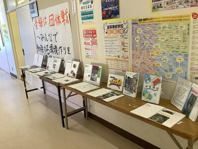 今週月曜日から学校公開週間が始まりました。保護者の皆様には、様々な授業活動を通し、生徒たちの生き生きとした姿をご覧いただくことができます。また、学校公開に併せて学習展示会も行っていますので、日頃の学習成果もご覧ください。下の写真は、学習展示会での代表生徒作品の一部です。