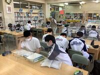 本校では、自由に自主学習ができる「STUDY+(スタディ・プラス)」が定期的に行われています。この日は、「STUDY+」が行われている図書室や第1理科室には、延べ50人以上の生徒が学習ワークなどを持ち寄り学習していました。また、この活動には、地域の方や大学生が生徒の学習をサポートしてくれています。