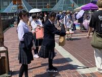 登校時間帯の募金2日目。生徒会役員の「ありがとうございます!」の声が清々しいです。
