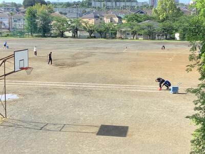 昨日、グランドコンディション不良にため延期になった学年練習を実施するため早朝から教員は準備に取り組んでいます。