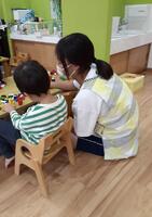 バオバブ保育園です。一緒に遊んだり、会の見守りをしたりしています。2日目に慣れてきた感じも写真で感じるのは私だけでしょうか。
