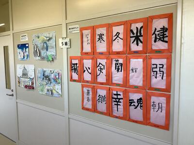 今週月曜日から学校公開週間が始まりました。保護者の皆様には、様々な授業活動を通し、生徒たちの生き生きとした姿をご覧いただくことができます。また、学校公開に併せて学習展示会も行っていますので、日頃の学習成果もご覧ください。下の写真は、学習展示会での代表生徒作品の一部です。