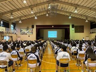 体育館では、講義形式ではなく、具体的な事例から、どうすればよかったのかを多くの生徒の意見を聞きながら、「SNSの安全な利用方法について」一人一人が考えることができました。