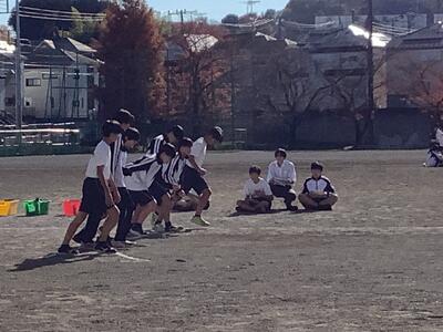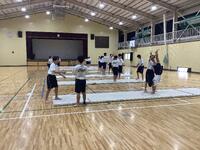 外体育では長距離走に全力で取り組む姿も嬉しい。体育館では先ほどのくらづに負けず集中した取り組み。上履きやジャージなどの整理整頓も立派で、こういう集団は安全に技能を高められます。