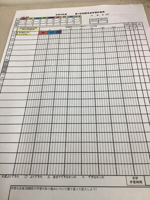 第1回定期考査は1年生にとって初の取り組み。そして、学習計画表も初体験。日常に学習習慣の定着の大切さと同じくらい、一定期間、計画的に学習を進める学習法を身に付けることも重要です。テスト前は2週間程度で計画しますが、将来的には1年、3年、10年の見通しが立てられ、さらに取組を進めながら学びを調整できることが狙いの一つです。