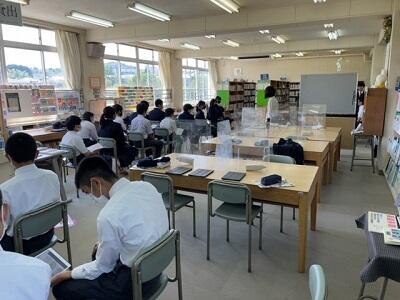 生徒会役員選挙立合演説会&投票 投稿日時 : 2021/09/10 和田中学校管理者 9月10日(金)約1週間にわたる生徒会役員選挙活動は最終日となり、本日は立合演説会&投票です。今回、感染症防止対策として立合演説会は、オンラインで図書室から配信され、各教室で立候補者と推薦責任者の演説を視聴しました。また、立候補者等の選挙広報は、生徒の各自タブレットで確認しながら聴いていました。そして、3年生の投票については、多摩市の選挙管理委員会からお借りした本物の投票箱と記入台を利用して、厳正で公正な選挙となりました。 {{options.likeCount}} {{options.likeCount}}