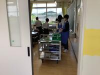 1年生も生徒だけで上手に準備をしています。おいしくたくさん食べるために気持ちよく早い準備は必須です。