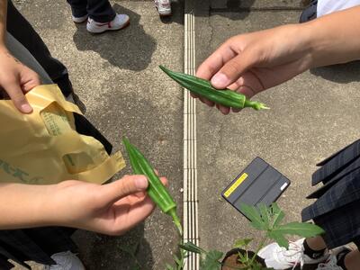 オクラにできが素晴らしい。持ち帰って、どのように食べようか楽しい悩みを抱えている2年生です。