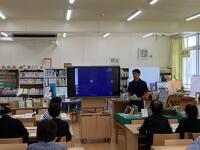 小学校の先生が授業を見にきていて、生徒たちも緊張気味。授業後に連携について協議します。