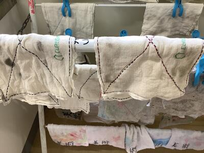 生きたSDGsの学習として、5組が先行して活動しています。和紙の繊維を元に作られた布を家庭科の時間に縫ってぞうきんにしました。いよいよ、そのぞうきんを使って掃除です。触り心地はほとんど布と変わらない!おどろきつつ掃除を進めています。このぞうきんは使い終えた後で埋めて土に戻す計画だとか。来週月曜日には、ゲストティーチャーを招いて学習を深めます。この活動の取り組みの記録はホームページのトップにあります!