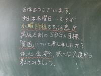 朝、校内の見回りをしていると、いろいろと気付くことがあります。廊下に掲示してあるちょっとしたものも、意図があってのもの。黒板に書かれた担任のメッセージも、生徒を豊かな学びにいざなうもの。ロッカーの整頓の仕方には、工夫が見られるものがあり感心します。真似できる要素もありますね!