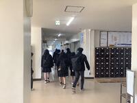 昨日までと違い日差しは弱く、冷え込み厳しい中での登校で、到着が遅れ気味の生徒へ、「明日は1分前には家を出ようね」と優しく一声かけています。