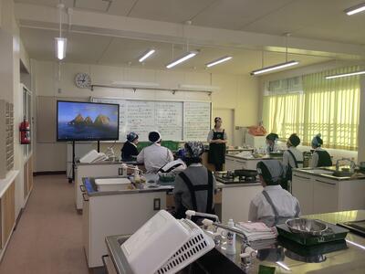 今後の「5組カフェ」でおもてなしする、スイートポテト、ポテトスティック、大学いもの試作会です。家庭科の授業で学び、その後の作業などの時間で質を高める研究をして5組カフェ当日に向かいます。来校される方はお楽しみに。