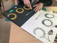 切り絵の授業です。発想、構成、集中力どれをとっても、各自が楽しみながら出し切って作品に取り組んでいます。