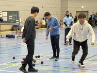 こちらも地域の方から茶道の歴史を学び、お茶を立てていただきました。その後は自分でも実際にお茶を立て、ペアの生徒に振る舞いました。実体験にたじたじの生徒も、格調高い雰囲気を楽しんで参加しています。