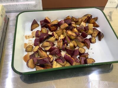 前回の試作の反省を活かして、明日の5組カフェでおもてなしする、おいもデザートの完成です。明日のたくさんの方々のご来場を楽しみにしております。