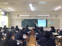 授業観察も兼ねて3年生の社会科の授業を1時間参観しました。単元のまとめで、学んできたことを使って、国の政策や社会問題について意見を戦わせる時間でした。全員が多面的多角的な思考で意見を交わし合っている授業から、今求められている教師のファシリテート役の授業と3年生の学びに向かう能力と姿勢に感動します。授業後、教室を出る際に、「ありがとうございました」と声をかけてくる男子生徒にさらに感動しました。