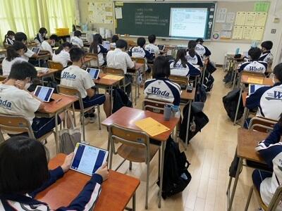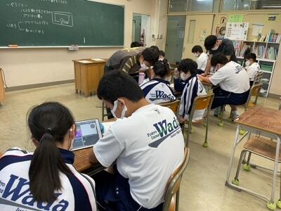 現在、本校では学年や教科に関わらず、先生たちがお互いの授業を参観するOJT授業参観期間になっています。授業を参観するポイントは、ICT機器の効果的な活用などです。