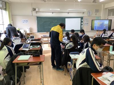 2年文化理解学習〔オンラインによる他地域中学校との交流会〕