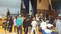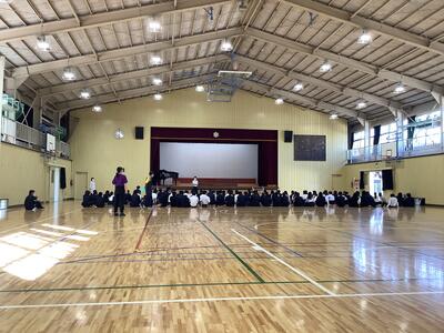 朝礼後に体育館練習があるクラスは朝の学活を行い練習に入っています。1時間目は校舎内に思いのこもった各クラスのハーモニーが響きわてっています。
