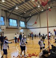 ボランティアや一般参加の和田中生も球入れを楽しんでいます。