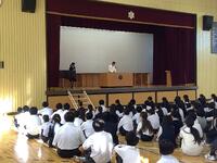 素晴らしい発表会を終えて、3年学年教員の思いを伝えたく、急遽集まってもらい昨日の感動を共有しています。和やかな集会の雰囲気の中、先生方の語りが生徒へしっかり伝わっています。立派に成長してきた生徒とこういう企画を発想できる教員からなる「チーム最高高学年」があと半年で3年間の活動を終え解散してしまうことを想像すると複雑な思いを抱いているのは私だけではないと思います。後輩への見本となれと言われますが、その前に自分たちが納得いく最高の卒業期を過ごしてほしい。それで自ずと周囲に伝播するから。
