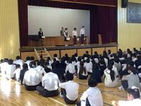 来週に月曜日から3日間の職場体験に入る2年生が全体で最終確認をしました。体調管理を行い、実りある体験にしてください。協力してくださる多くの事業所に感謝いたします。